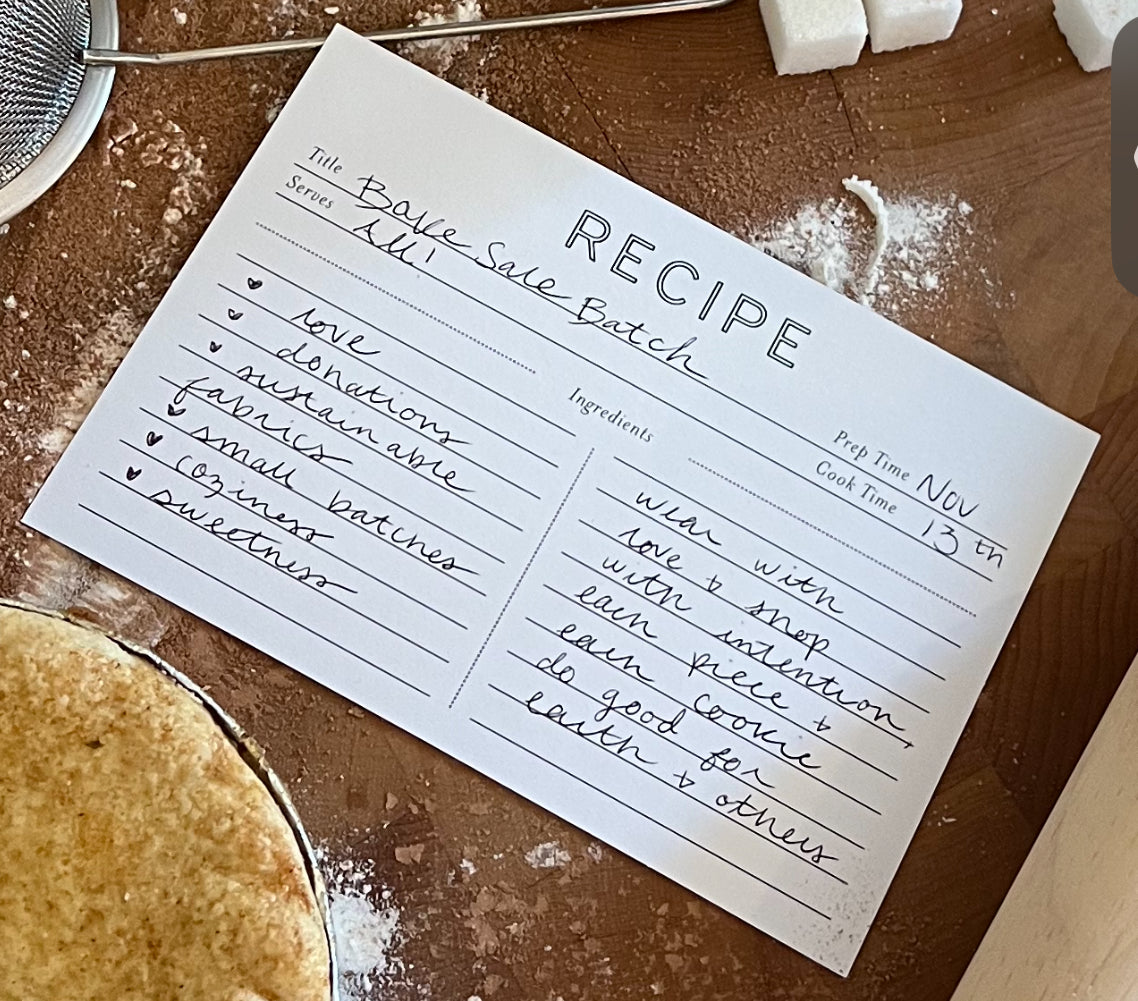 Coming soon — The Bake Sale Batch, a cozy sustainable capsule collection by Kait Macleod. Featuring hand-knit cardigans, traditional plaid silks, and warm fall tones made with sweetness and care.