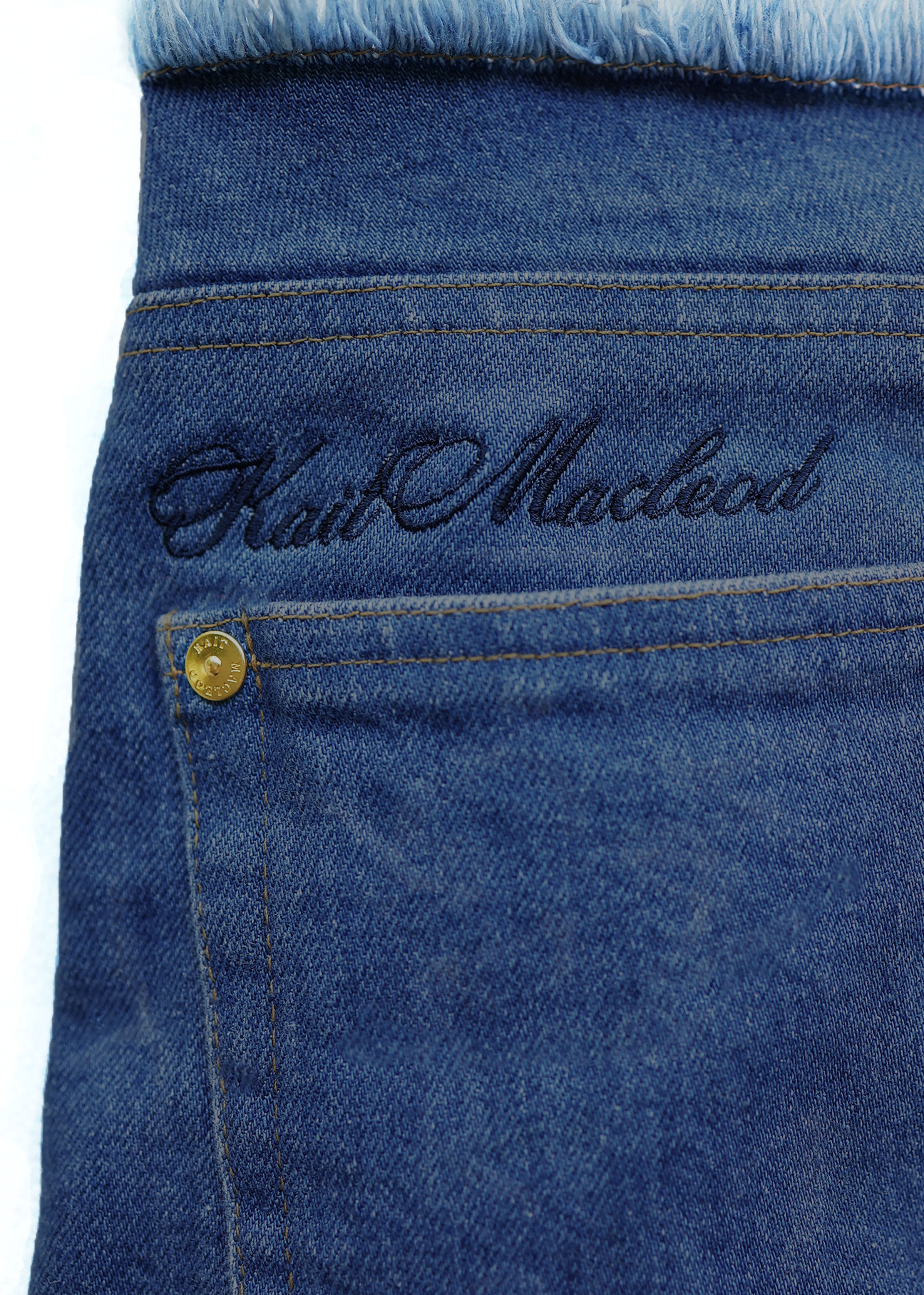 Meet Andy — our effortlessly cool, vintage-inspired jean cut from American-made Cone denim which is celebrated for its quality and rich indigo character. Designed with a long straight leg and flattering fit that lifts your shape just right. Andy features a raw-edge waist (no waistband for that undone feel), tonal KM embroidery at the back, and a hidden closure for a clean finish. Crafted with a softly faded vintage wash that only gets better with wear.